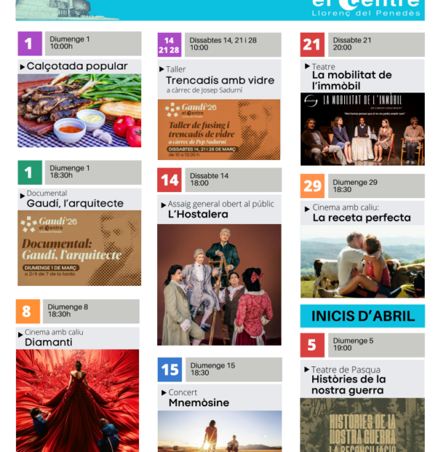 Diumenge, 18 de gener de 2026, a 2/4 de 8 del vespreLLEGIR MÉSSubvenció de la Diputació al Centre