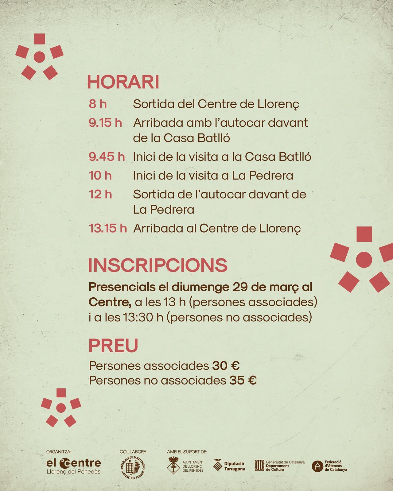 • 29 de març a les 13 h (persones associades)/ 13.30 h (persones no associades)