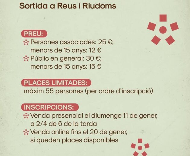 𝗣𝗹𝗮𝗰𝗲𝘀 𝗹𝗶𝗺𝗶𝘁𝗮𝗱𝗲𝘀: (per ordre d’inscripció)𝗜𝗻𝘀𝗰𝗿𝗶𝗽𝗰𝗶𝗼𝗻𝘀: fins el 20 de gener P𝗿𝗲𝘀𝗲𝗻𝗰𝗶𝗮𝗹: Diumenge, 𝟭𝟭 𝗱𝗲 𝗴𝗲𝗻𝗲𝗿 de 2026 a 2/4 de 6 de la tarda, per