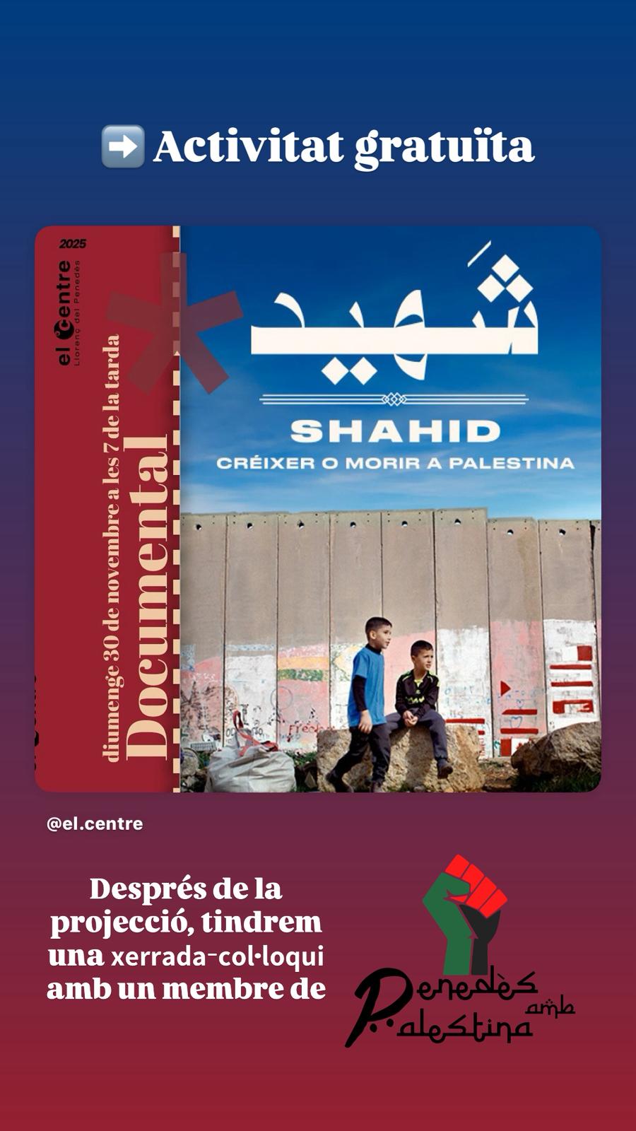 🎤 Després de la projecció, tindrem una 𝘅𝗲𝗿𝗿𝗮𝗱𝗮-𝗰𝗼𝗹·𝗹𝗼𝗾𝘂𝗶 amb un membre de 𝗣𝗲𝗻𝗲𝗱𝗲̀𝘀 𝗮𝗺𝗯 𝗣𝗮𝗹𝗲𝘀𝘁𝗶𝗻𝗮, per aprofundir en el documental i compartir reflexions sobre la situació actual.