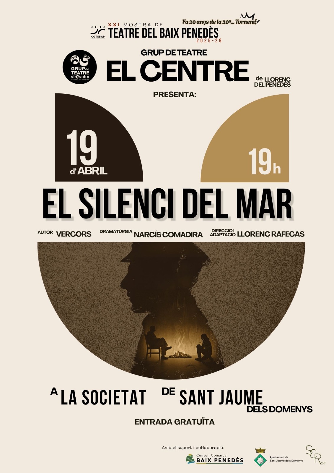 El nostre grup de teatre participa a la XXI Mostra de Teatre del Baix Penedès, amb la representació de l’obra “El silenci del mar”, estrenada al Centre el passat mes de febrer de 2025. Una oportunitat única pels qui encara no l’heu vist!