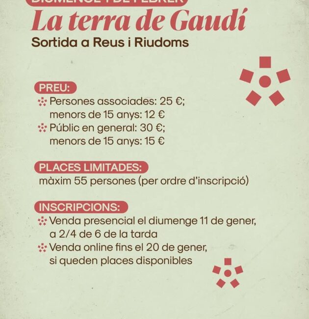 Inscripcions per internet fins el 20 de gener!LLEGIR MÉS2026 ANY GAUDÍ AL CENTRE